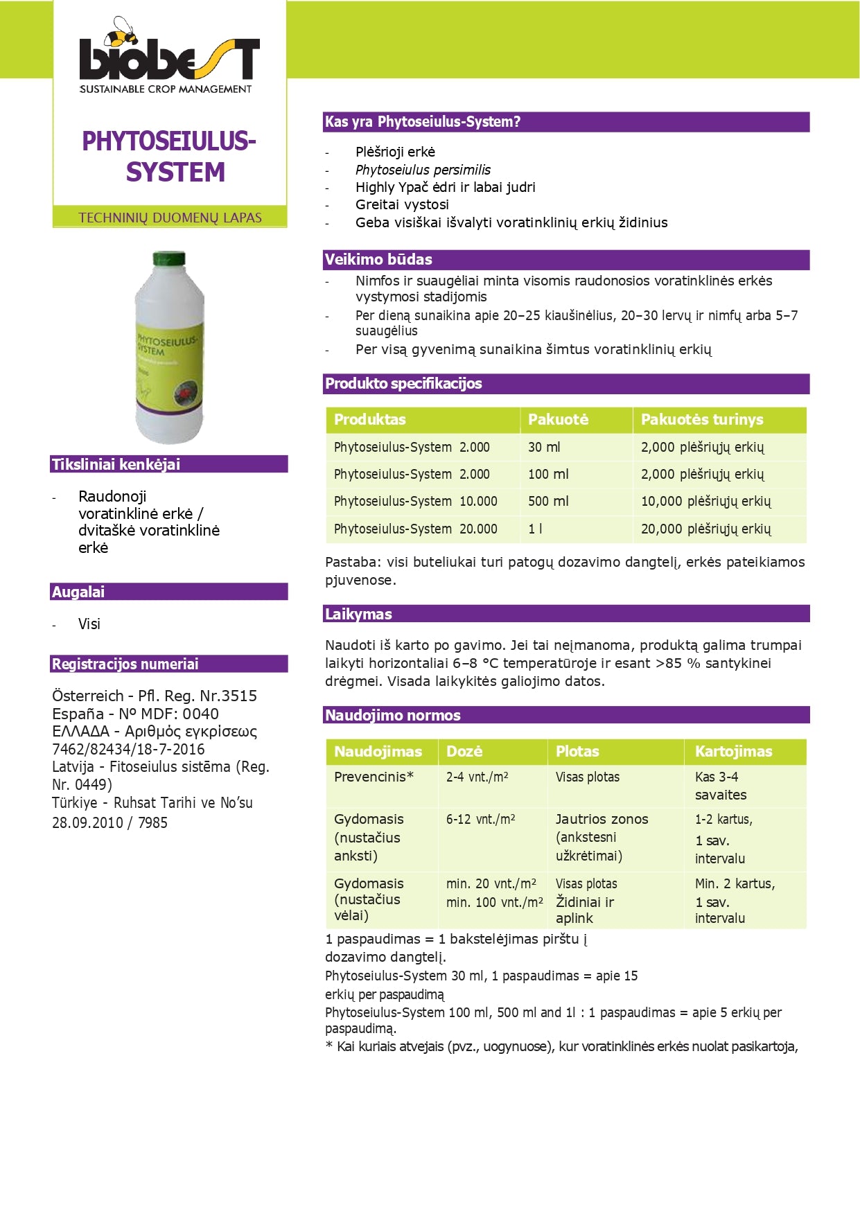 Due to its rapid development and very large appetite, the predatory mite can completely destroy spider mite colonies. Although Phytoseiulus nymphs stay in the same place, adults are mobile and look for other pest-infested places. If the plants touch each other, then the predator can quickly reach another in the focus of pests.